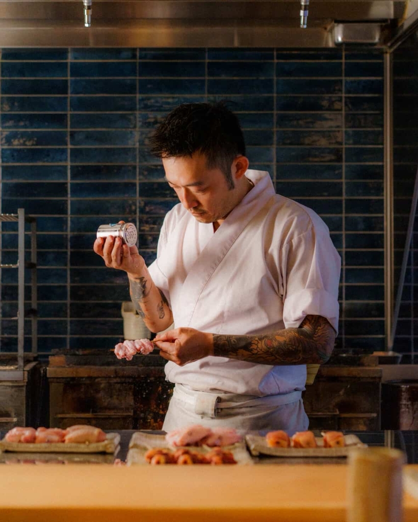 その後、2014年に日本料理の名店「龍吟(りゅうぎん)」で本格的に炭火の技法を学びます。